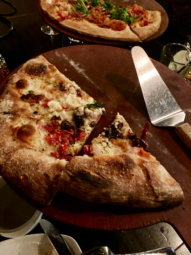 12', no tomato sauce, evoo, feta, grilled aritchoke, sundried tomato, roasted red pepper, kalamata olive, garlic, mozzarella, romano, fresh basil, oregano.