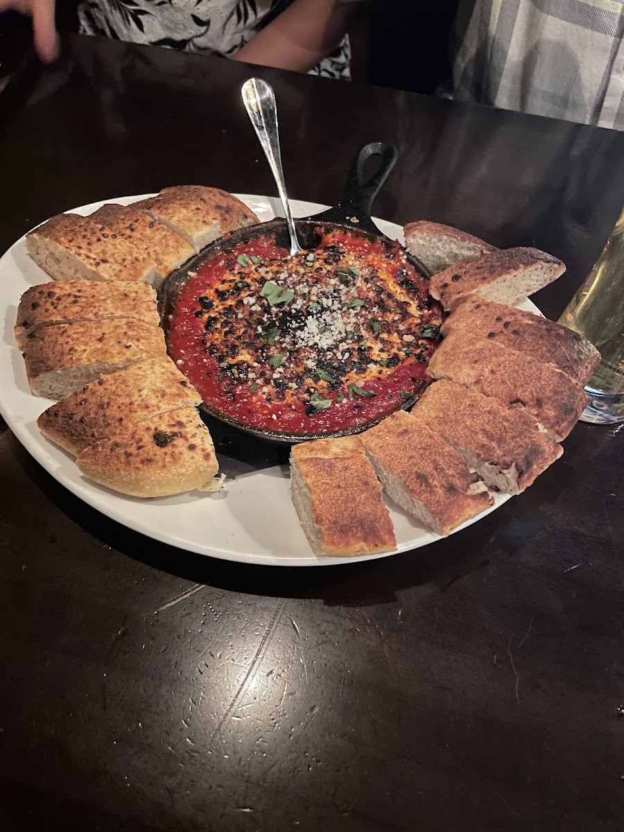 Goat cheese, roasted red pepper, plum tomato sauce, fresh basil, and hand shaved parmesan. Served with our house made focaccia bread. Serves 2.