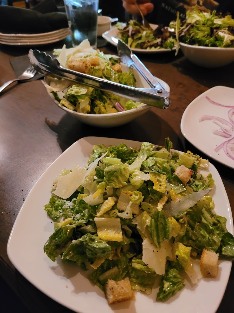 Hearts of Romaine, hand shaved parmesan, Romano cheese, house made croutons, traditional Caesar dressing. Serves 2 or more. All dressings made from scratch daily.